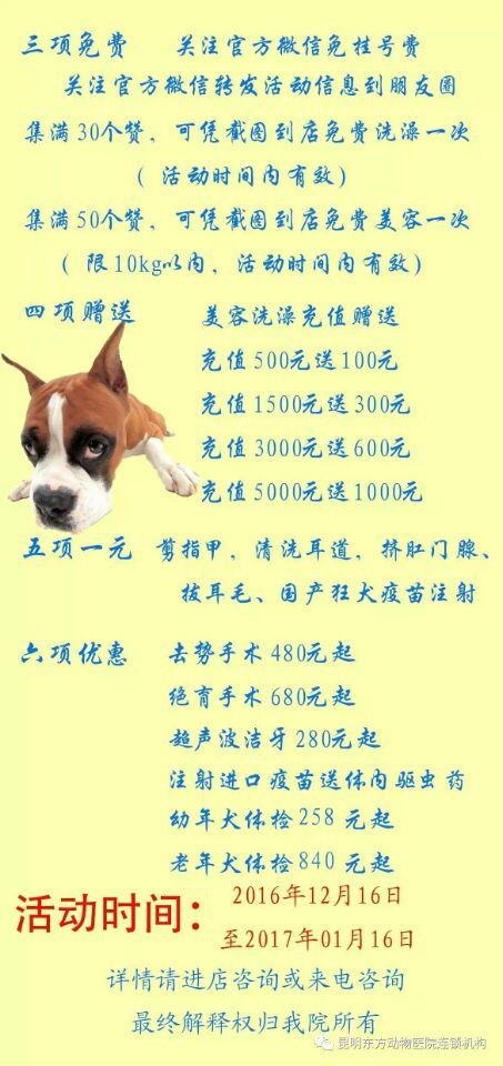 云南东方-博爱动物医院连锁机构创建于2001年,十六年来.在经过多次改革,目前是本地区最大动物医院连锁机构,共拥有11家门店,综合使用面积近3000余平方米,大家庭成员100余人,医疗机构主要分布于昆明,玉溪。